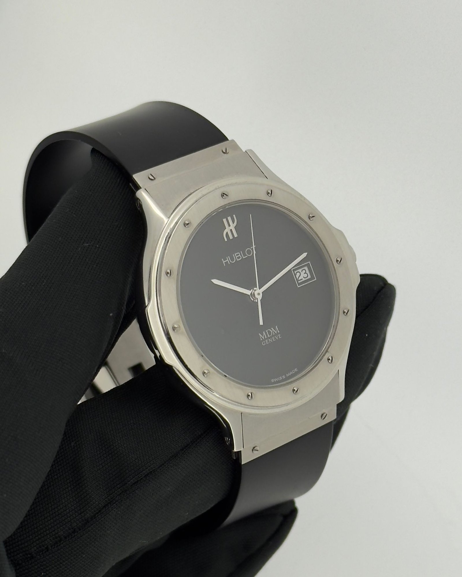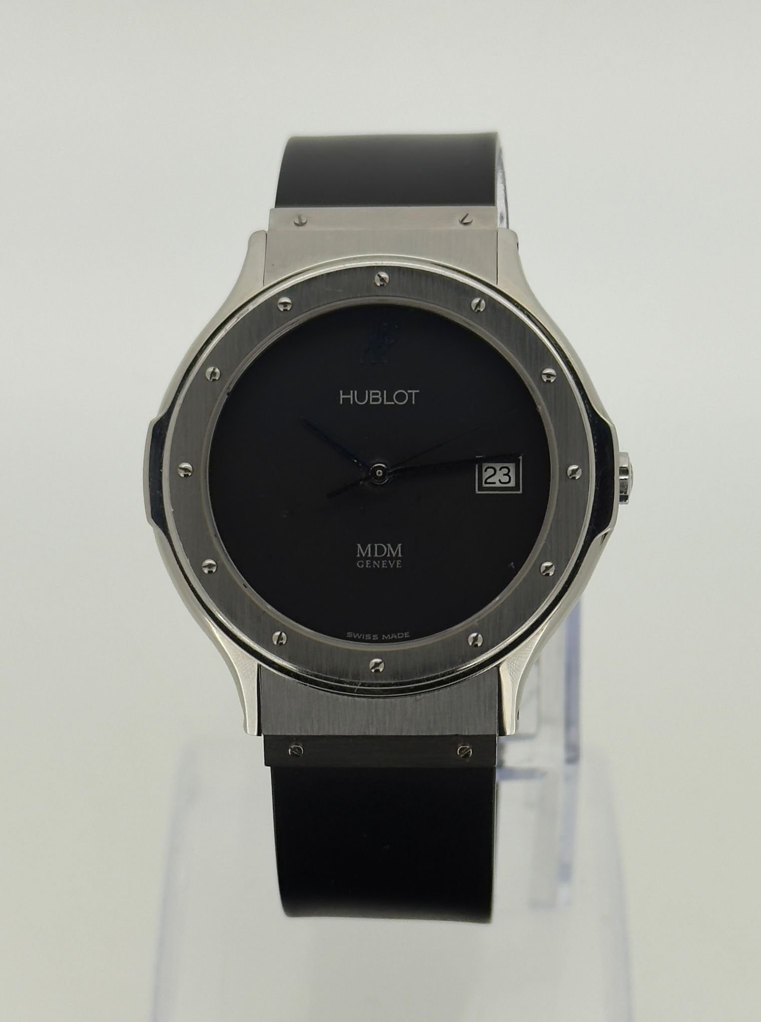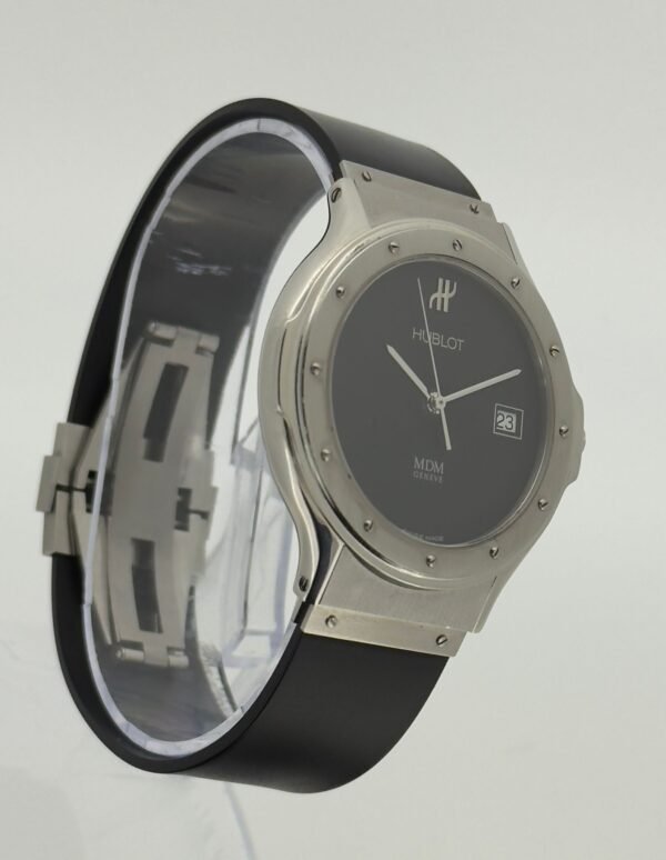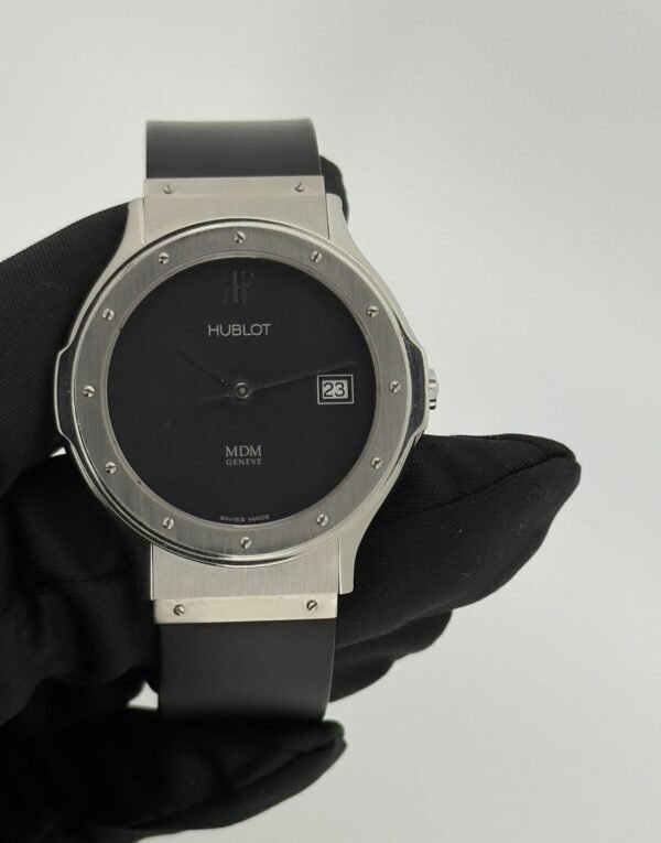 Elegante reloj Hublot Classic con esfera negra.